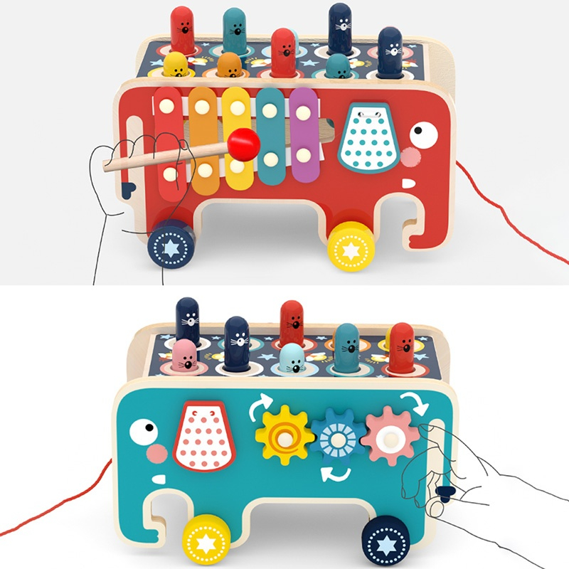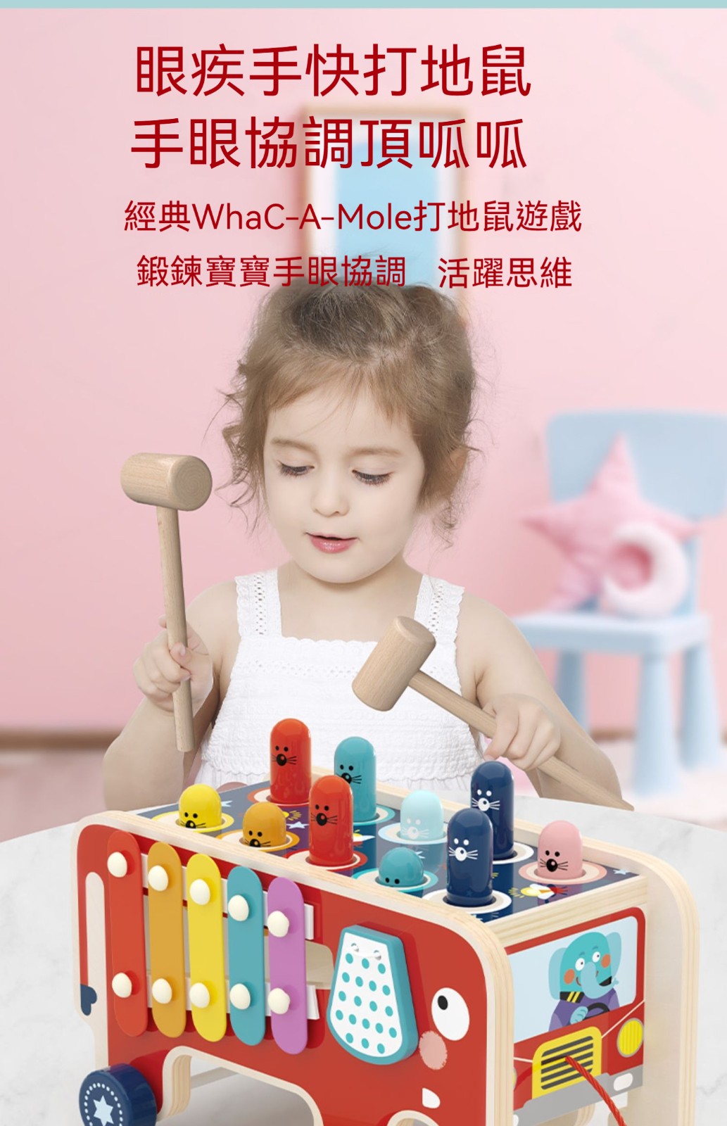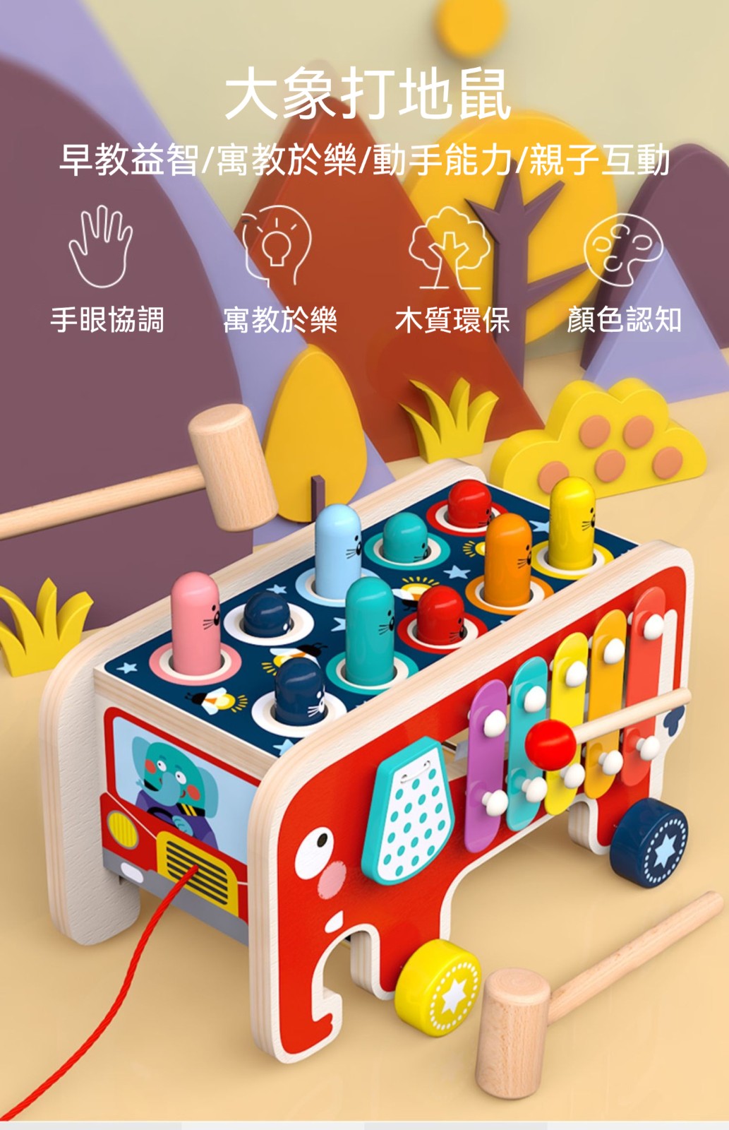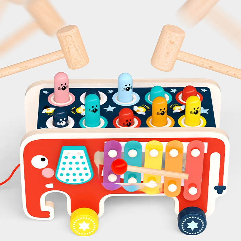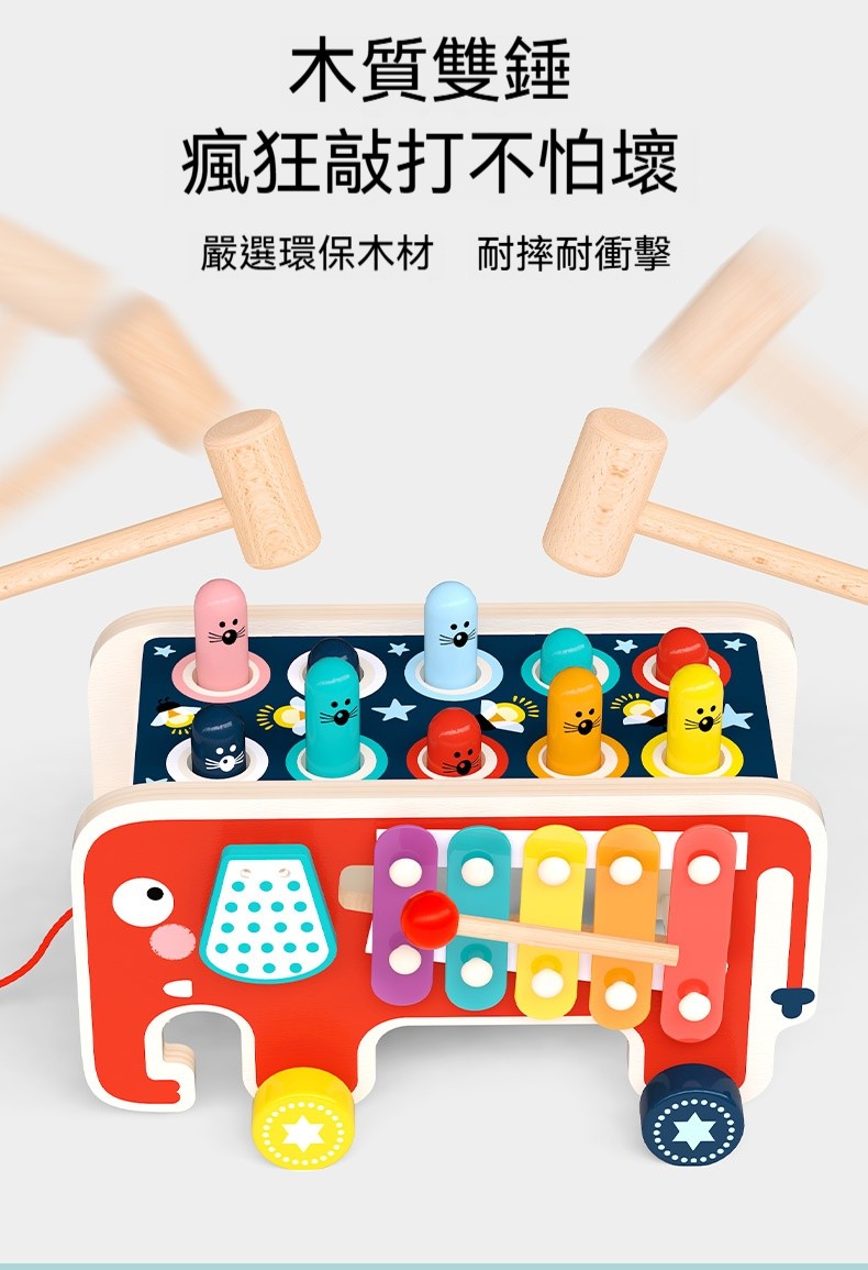 ✨蒙特梭利魔性打地鼠+積木二合一✨ 天然實木嬰幼童益智玩具 | 1-3歲早教必備 | 訓練手眼協調/反應力 | 安全無毒環保漆 | 男女寶啟蒙送禮推薦
