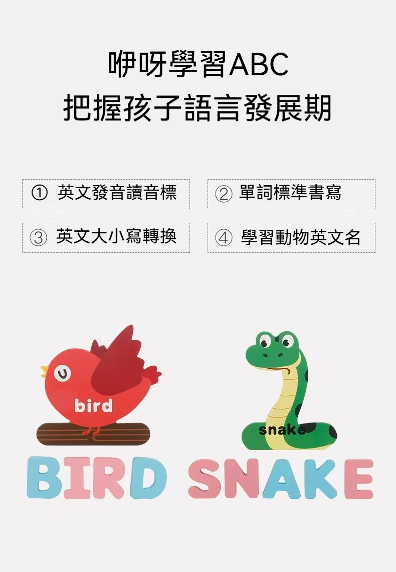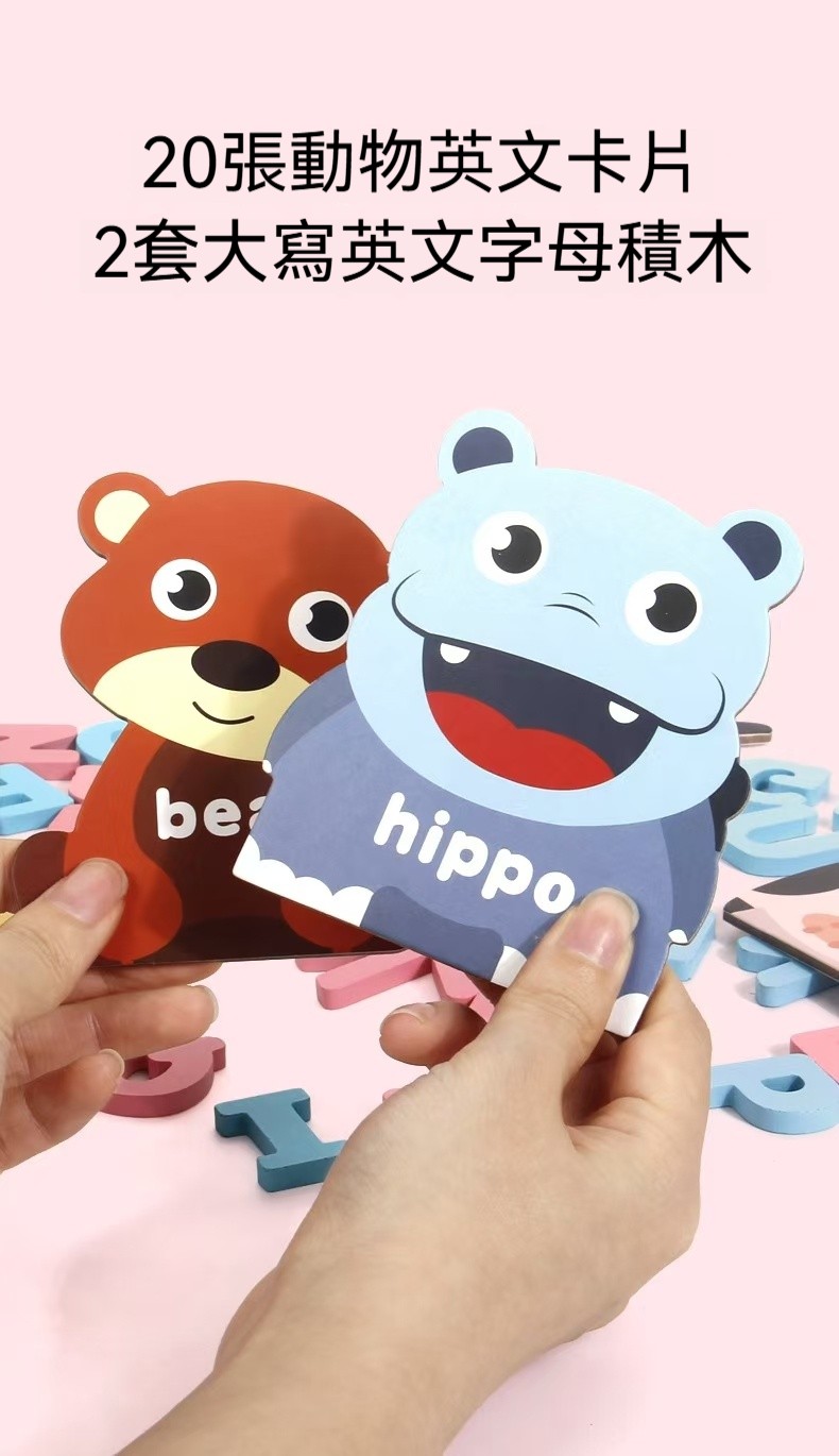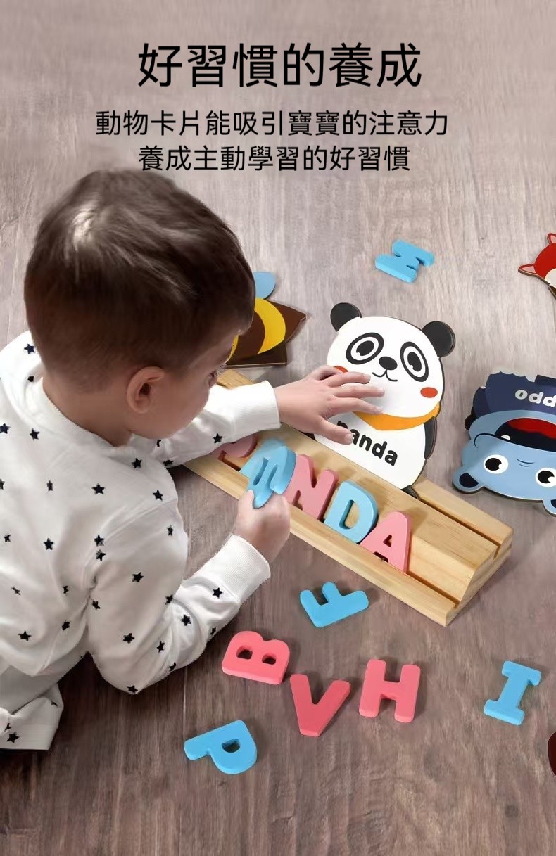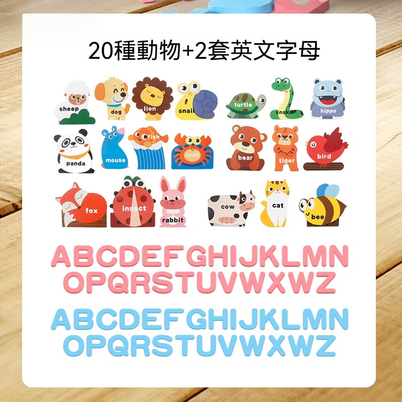 【台灣現貨免運】萌寵動物字母拼圖卡 - 加厚木製ABC積木拼板 | 中英單字認知 幼兒早教益智玩具 訓練手眼協調 兒童節禮物推薦?
