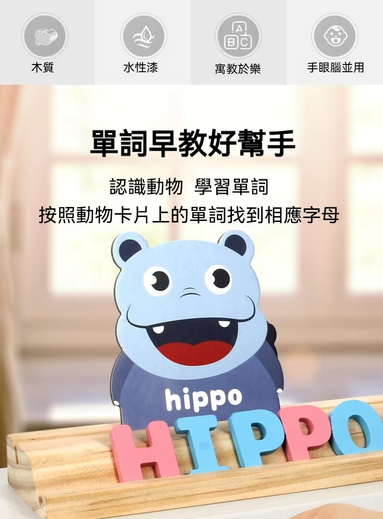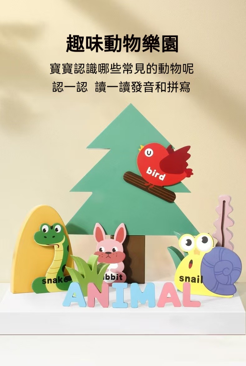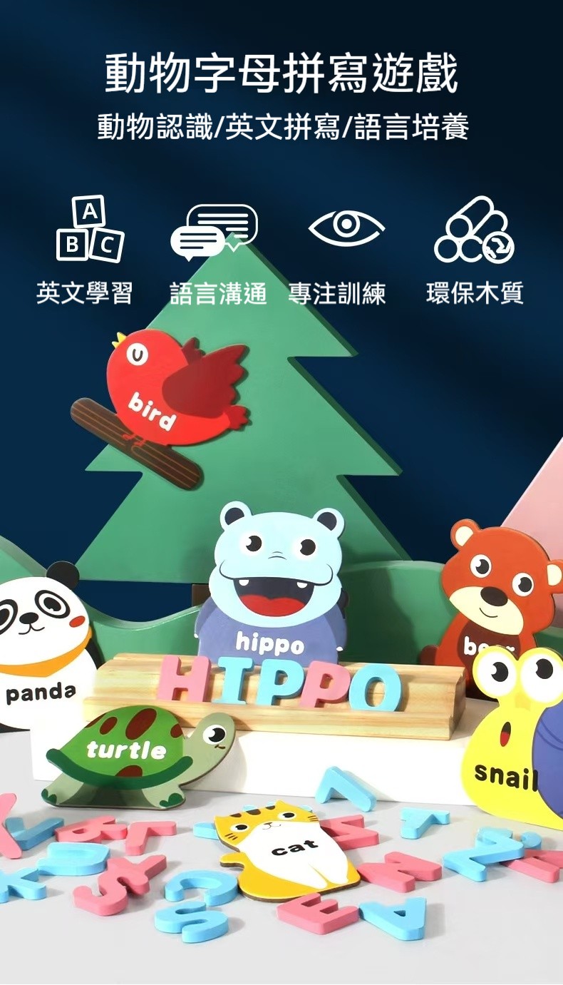 【台灣現貨免運】萌寵動物字母拼圖卡 - 加厚木製ABC積木拼板 | 中英單字認知 幼兒早教益智玩具 訓練手眼協調 兒童節禮物推薦?