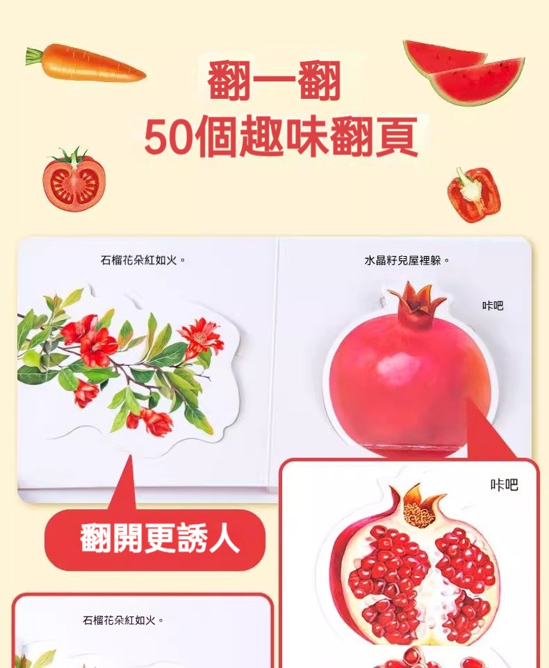 ✨【食育啟蒙首選】0-6歲幼兒撕不爛翻翻書✨ 3D立體機關x觸摸設計|認識水果蔬菜|寶寶輔食指南|台灣現貨
