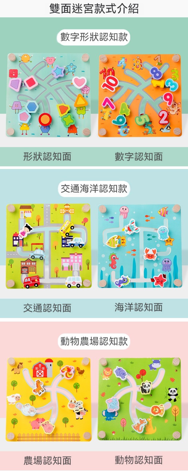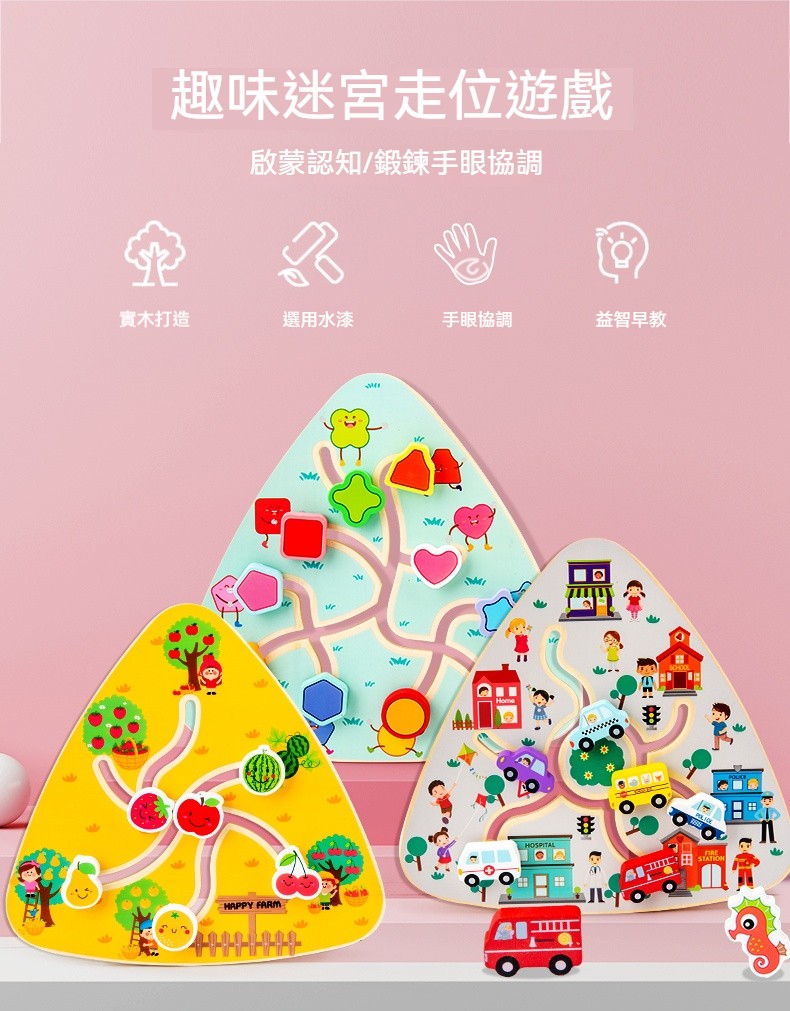 小寶貝的蒙氏探索樂園 優質木製迷宮找位配對玩具|1-3歲專注力訓練神器|安全無毒水漆|啟蒙認知與邏輯思維