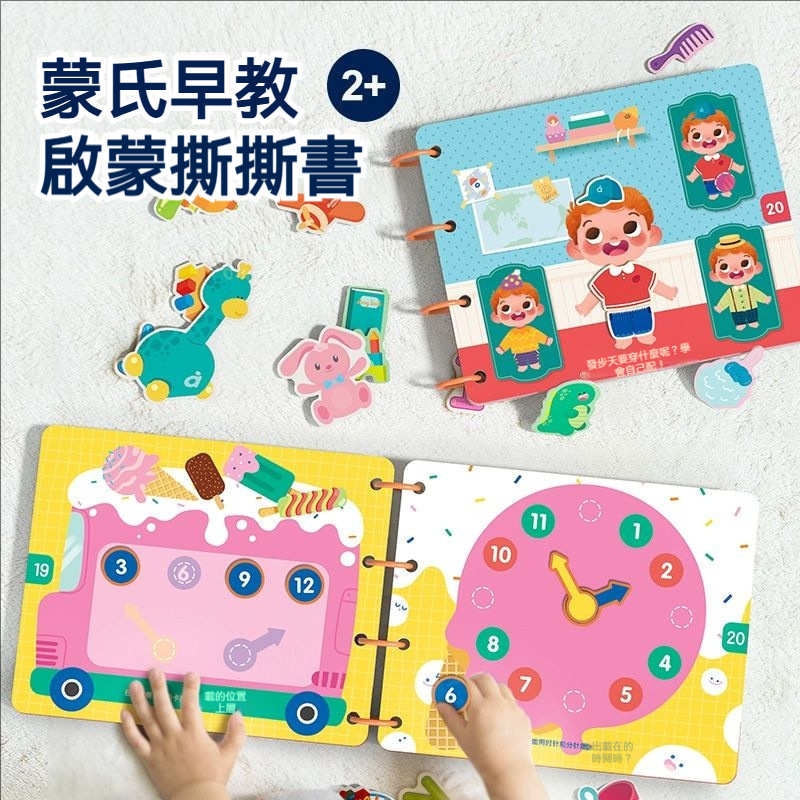 【台灣現貨】蒙特梭利早教必備!多功能穿衣學習板+忙碌布書|撕貼扣綁精細動作訓練|安全無毒材質|0-3歲寶寶探索成長玩具